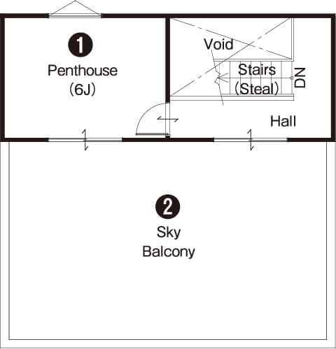 3階のバルコニーにつながるPENTHOUSEは趣味やこだわりを詰め込んだ空間として楽しみたいところ。