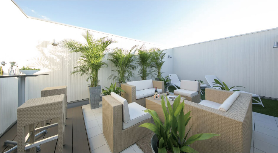 ワンフロア分の広々バルコニーは、周囲の視線から隔絶された開放感あふれるプライベートゾーン。