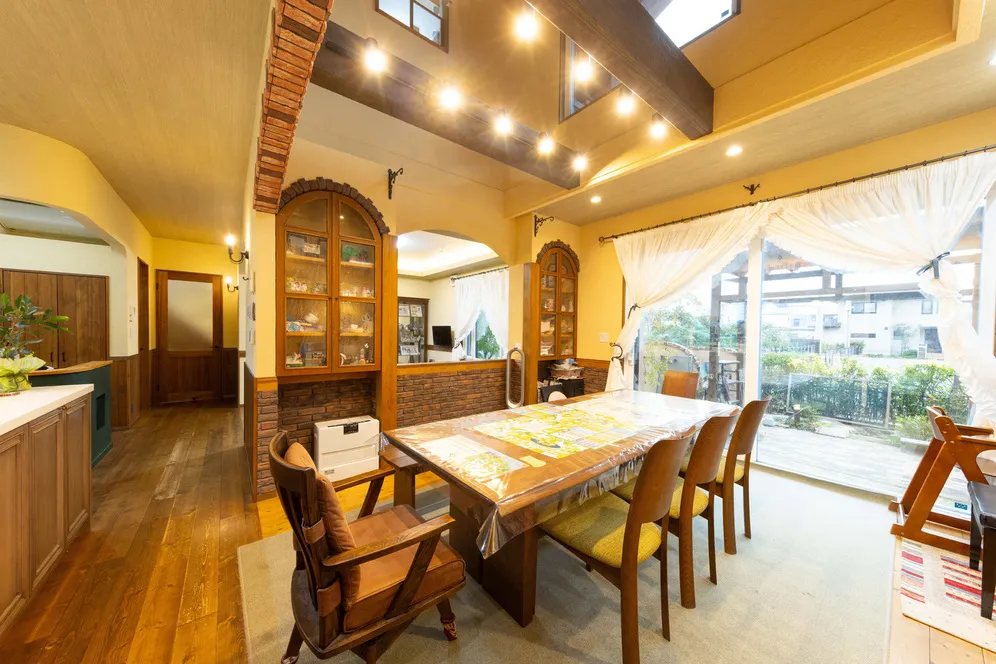 こだわりのダイニングには、一枚板のテーブルが堂々とした存在感を放ちます。誕生日など家族の記念日には、ここに全員が集まってお祝いをするというOさま家族。温かな団らんに包まれた、賑やかな時間が流れます。