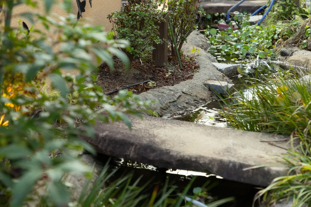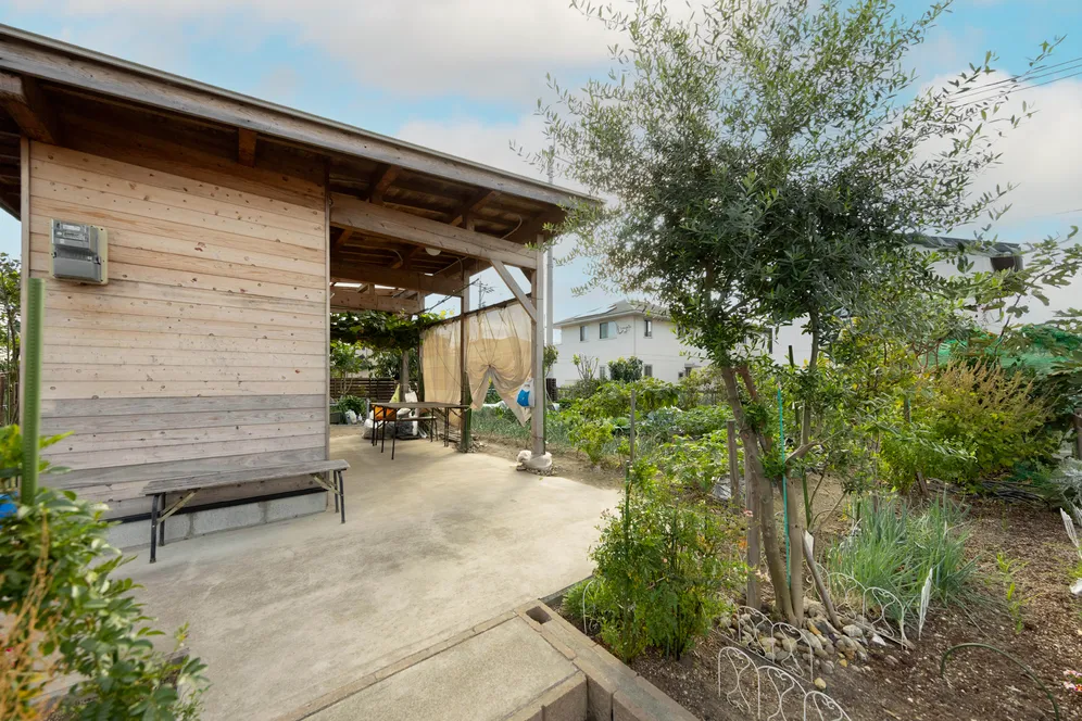 造園や外構を専門とするパートナー会社が手掛けたエクステリアは、造池や季節の木々によって自然を感じられ、ガーデンパラソルの下でティータイムも楽しめます。